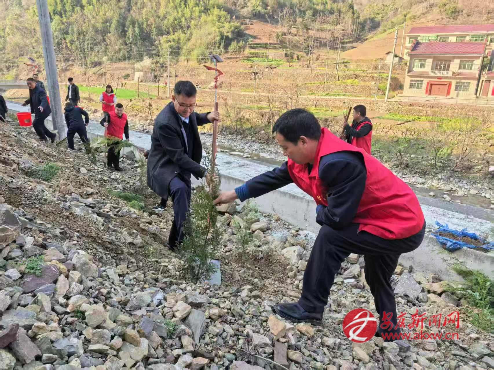 仙河鎮(zhèn)、鄖西縣景陽鄉(xiāng)、旬陽市天保站黨支部聯(lián)合開展以“同造一片林、共護一江水”為主題的義務植樹活動