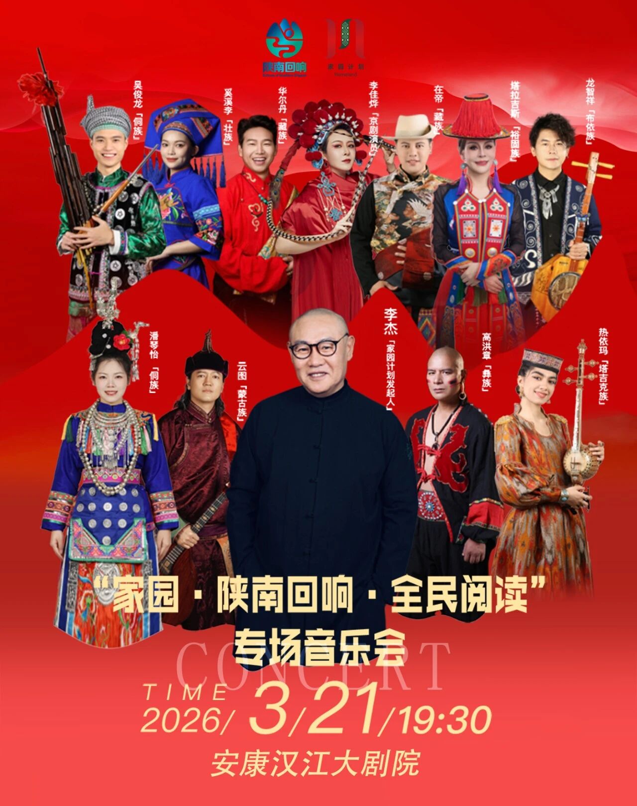 今年2月1日,《全民閱讀促進(jìn)條例》正式施行,標(biāo)志著全民閱讀邁入法治化、規(guī)范化的發(fā)展新階段。條例明確指出,要鼓勵(lì)開展內(nèi)容健康、展現(xiàn)文化底蘊(yùn)、形式多樣的閱讀推廣活動(dòng)。在安康,閱讀不僅是靜默的文字,更可以是躍動(dòng)的音符、流淌的旋律。3月21日(周六)19:30,一場別開生面的“家園·陜南回響·全民閱讀”專場音樂會(huì)將在安康漢江大劇院大劇場拉開帷幕。這場由著名音樂人李杰領(lǐng)銜、匯聚九大民族藝術(shù)家的視聽盛宴,邀您共赴一場“用歌聲閱讀大地”的詩意之約。