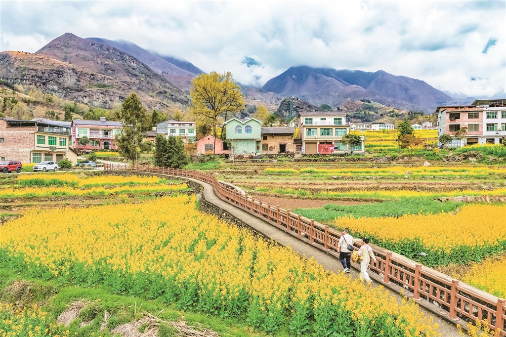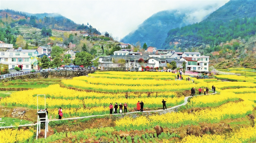 起初只是田埂上零星幾株,怯生生地探出嫩黃的花苞??刹怀鰩兹眨@黃便再也按捺不住,從月河川道到鳳凰山麓,從淺山丘陵到漩渦鎮(zhèn)的梯田,轟轟烈烈地鋪展開來,像是誰打翻了顏料桶,把整個(gè)春天都染成了金黃。