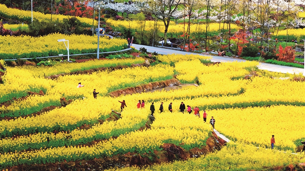 3月18日,游人漫步花田,邂逅漢陰山鄉(xiāng)好時(shí)光。 張忠 攝