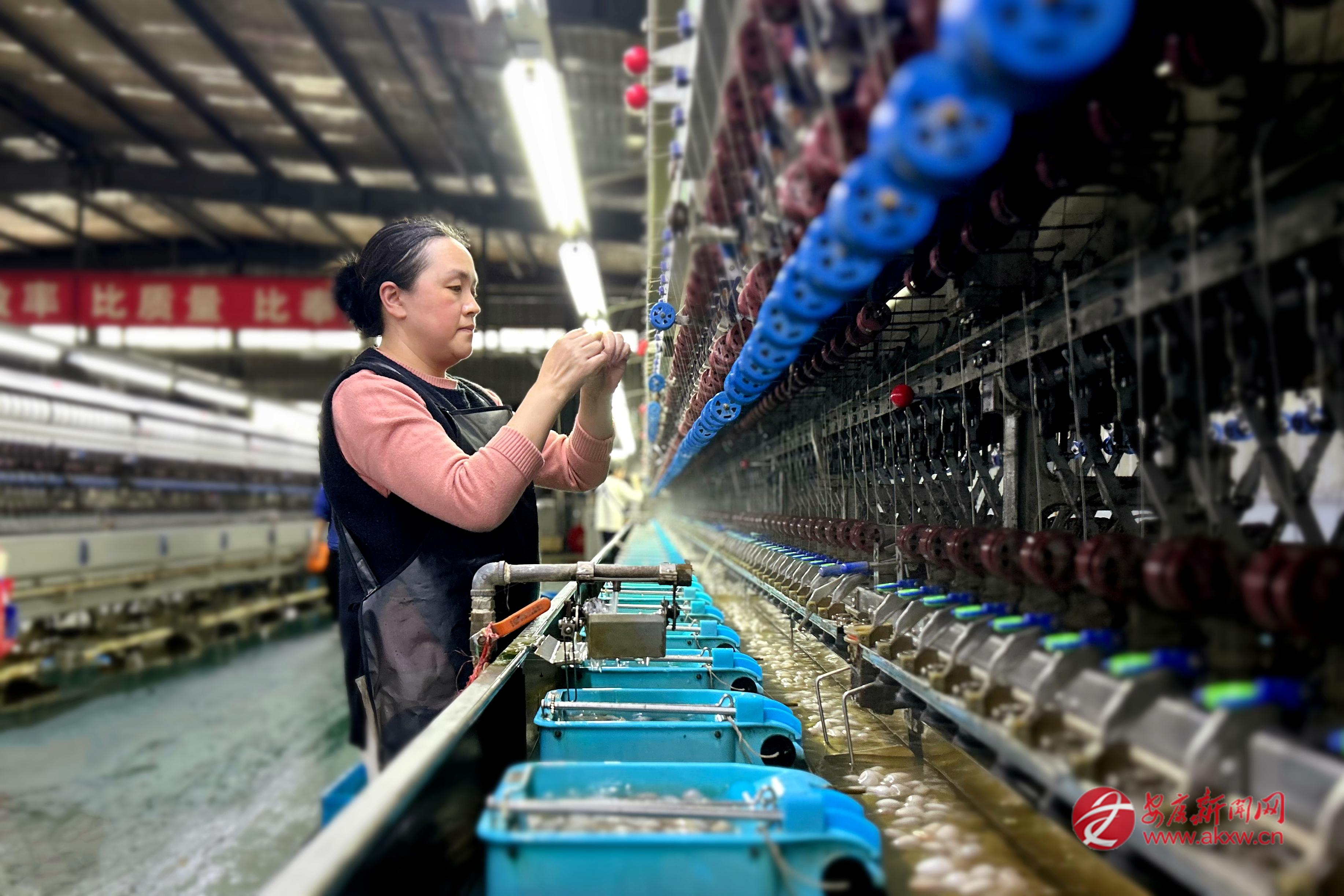 “今年國內(nèi)高端家紡市場需求旺盛,訂單一直很充足。”企業(yè)負責人孫浩勇介紹,依托本地優(yōu)質(zhì)蠶繭,企業(yè)滿負荷生產(chǎn)。同時,通過“企業(yè)+合作社+農(nóng)戶”利益聯(lián)結(jié)機制,天成絲業(yè)與數(shù)千戶蠶農(nóng)簽訂保底收購協(xié)議,提供全流程服務,實現(xiàn)企業(yè)增效、蠶農(nóng)增收。