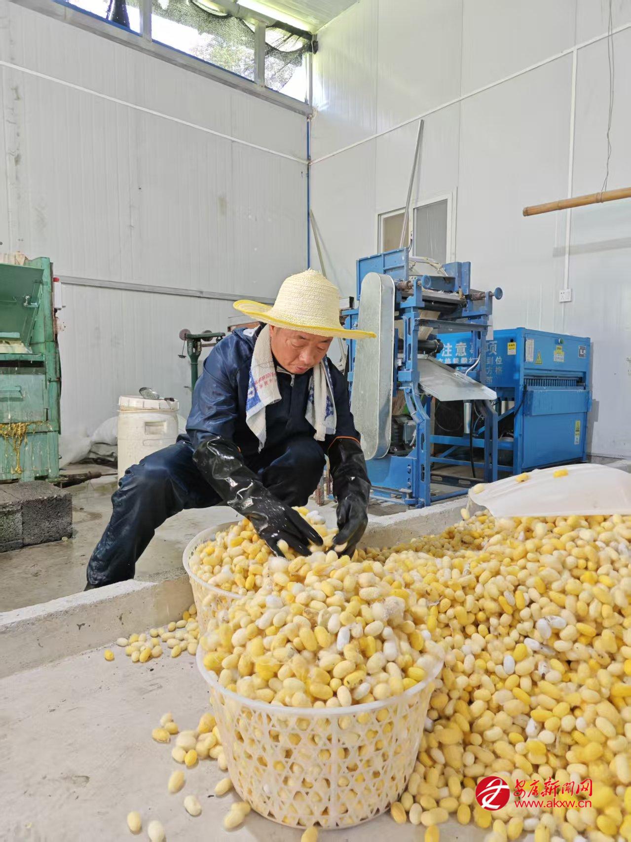 “以前養(yǎng)蠶全靠經(jīng)驗,溫濕度把控不好,蠶繭產(chǎn)量低?,F(xiàn)在有了智能設備和技術指導,養(yǎng)蠶更輕松,收入也更高了?!崩罴液哟屦B(yǎng)蠶大戶王興義感慨道。作為產(chǎn)業(yè)帶頭人,他投資200余萬元成立家庭農(nóng)場,配套建設標準化養(yǎng)蠶室和加工廠房,引進滑輪升降式省力化蠶臺、自動化養(yǎng)蠶設備,實現(xiàn)了從種養(yǎng)到加工的全鏈條升級。