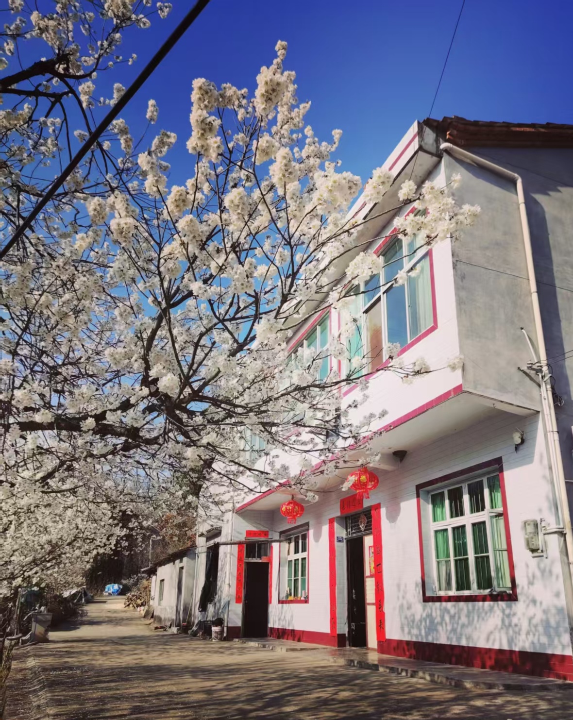 城關(guān)鎮(zhèn)月河村庭院旁的櫻花爛漫盛放