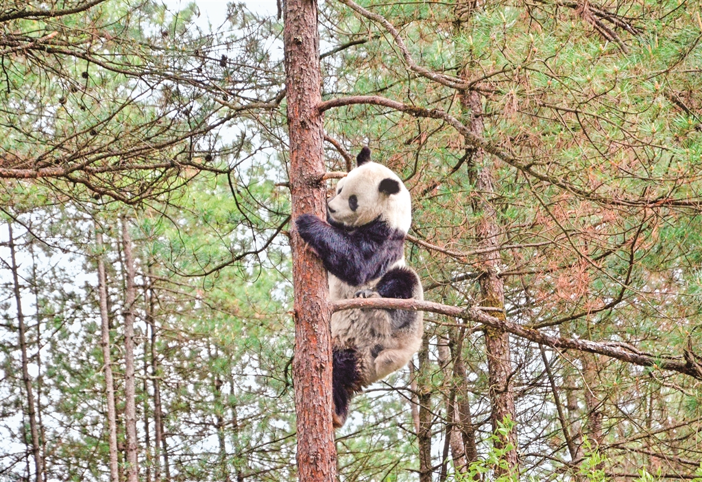 在樹(shù)上躲避天敵、等待母親歸來(lái)的大熊貓幼崽