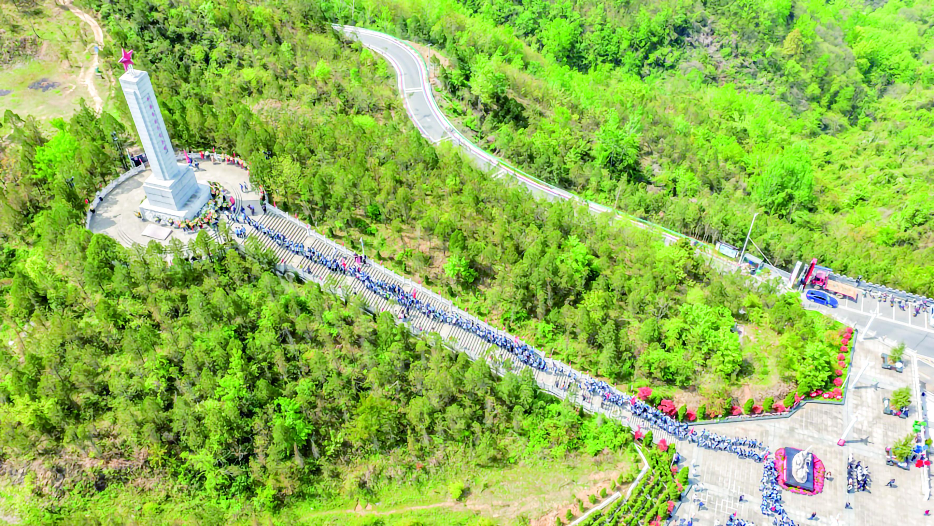 ▼ 4月3日,江北高級(jí)中學(xué)、安康中學(xué)初中部等5所學(xué)校的3000余名師生徒步赴牛蹄嶺開展清明祭奠烈士活動(dòng)。 皮勇維 攝