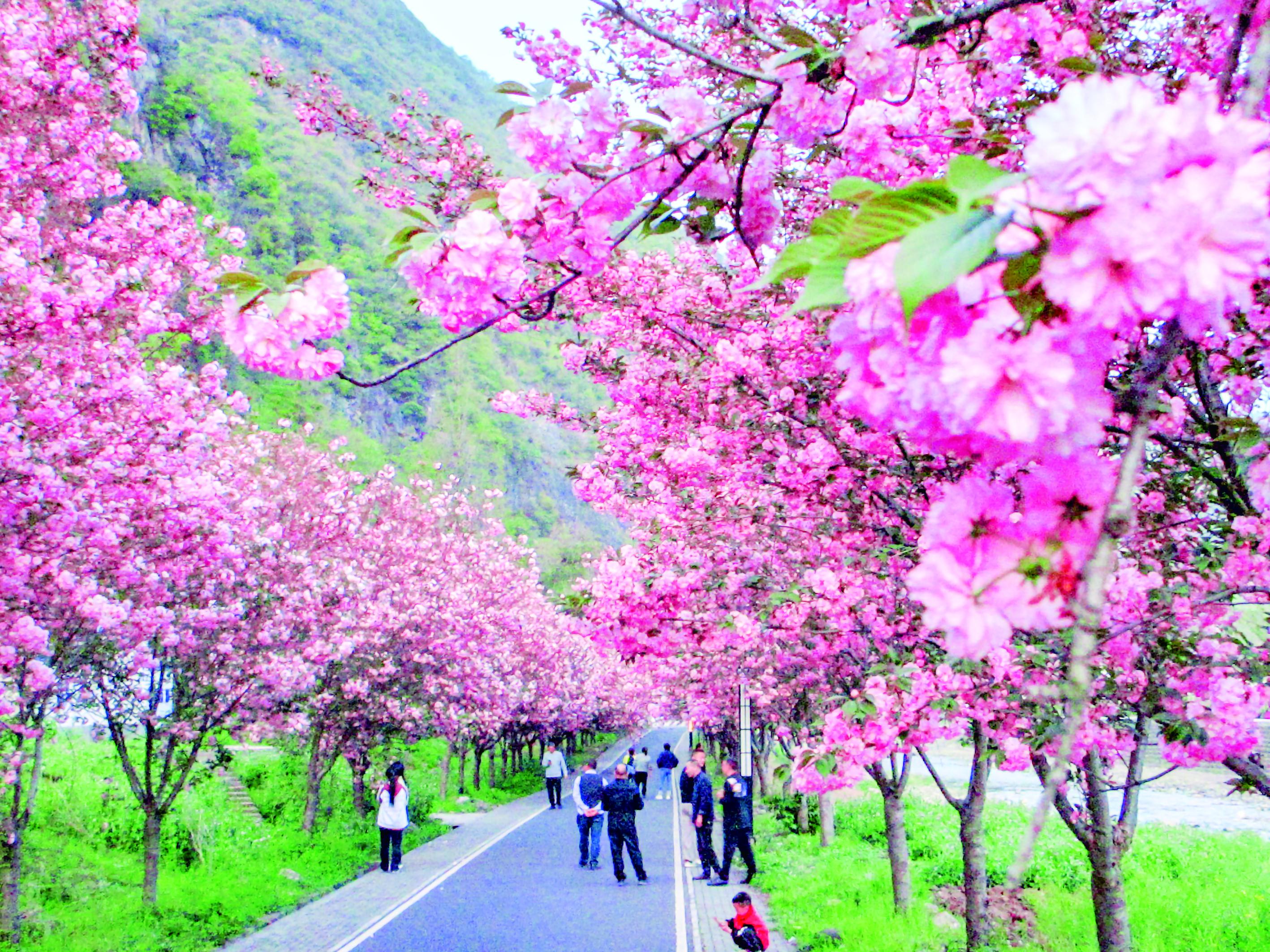 4月4日,平利縣城關(guān)鎮(zhèn)金華村的櫻花進入盛花期,不少游客專程前來賞花拍照。 劉應(yīng)珊 攝
