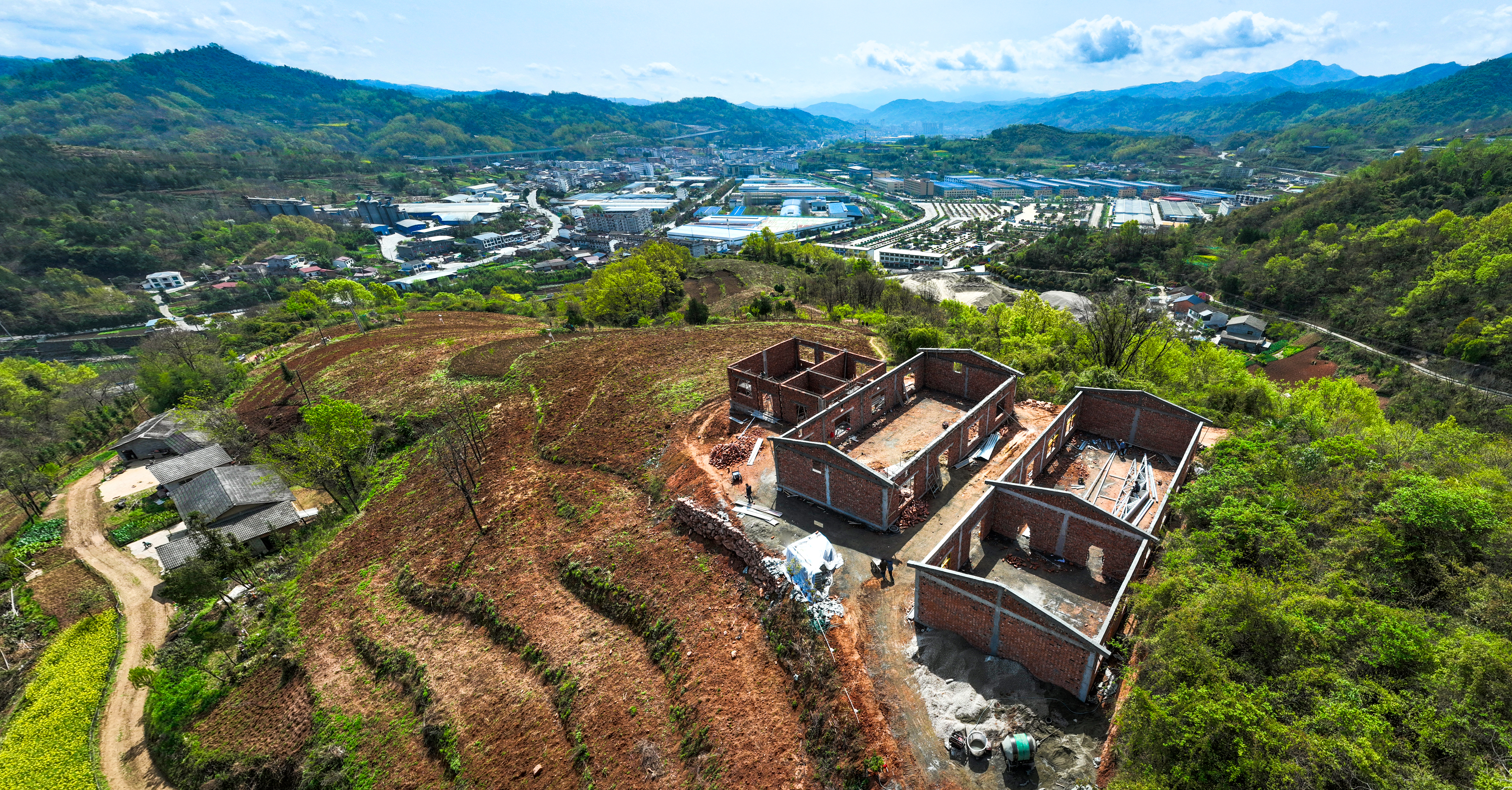 4月1日,石泉縣城關(guān)鎮(zhèn)標(biāo)準(zhǔn)蠶室建設(shè)項(xiàng)目正加快推進(jìn)。今年,該鎮(zhèn)新建5處標(biāo)準(zhǔn)化蠶室,總建筑面積達(dá)1070平方米。項(xiàng)目建成投用后,預(yù)計(jì)全年可新增養(yǎng)蠶量3000張,將有效提升當(dāng)?shù)匦Q桑產(chǎn)業(yè)規(guī)?;?、標(biāo)準(zhǔn)化水平,為助力群眾增收、推動(dòng)鄉(xiāng)村產(chǎn)業(yè)振興注入新動(dòng)能。圖為即將完工的黃荊壩社區(qū)標(biāo)準(zhǔn)化蠶室和300畝密植桑園。 董長(zhǎng)松 攝