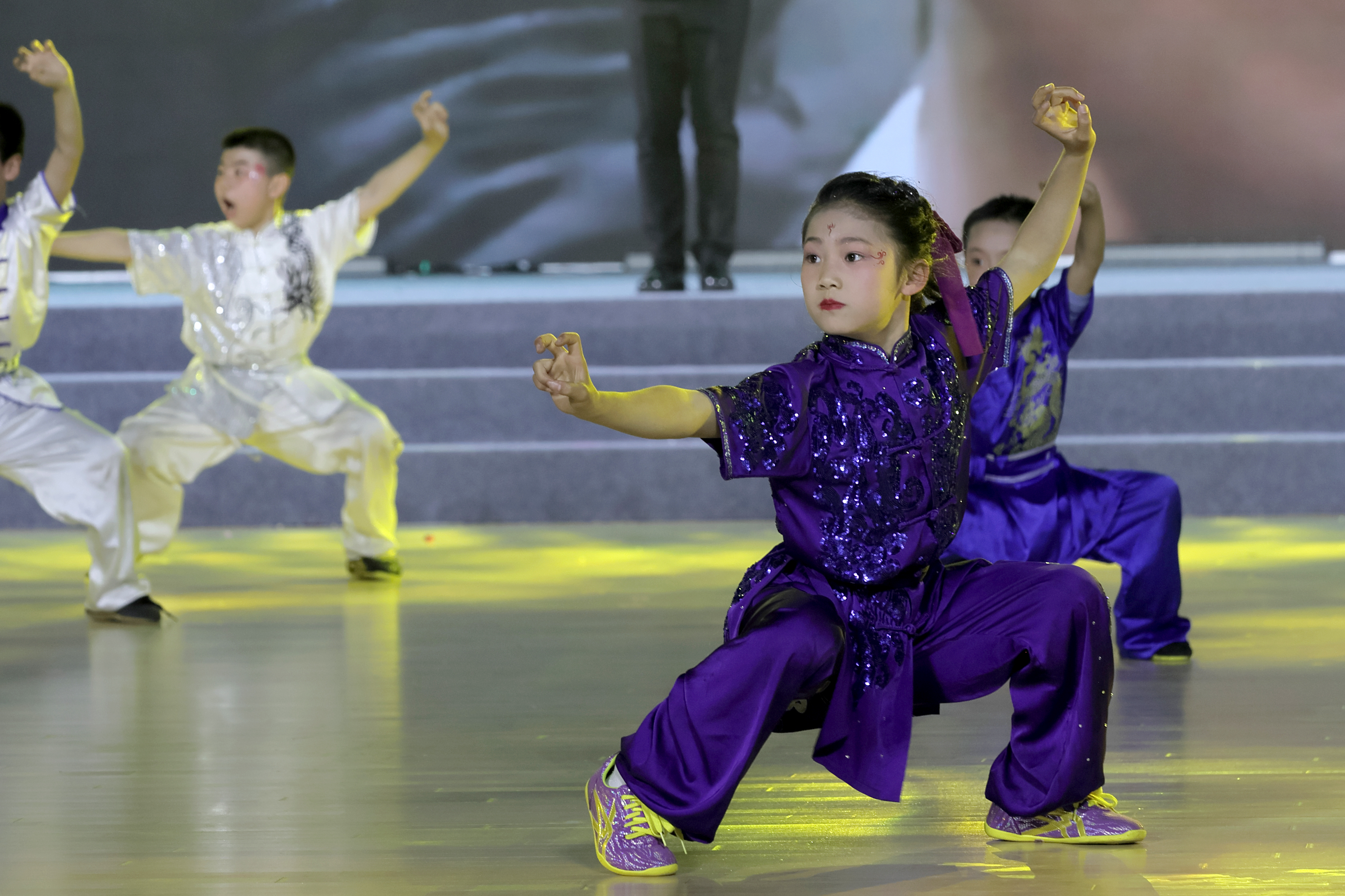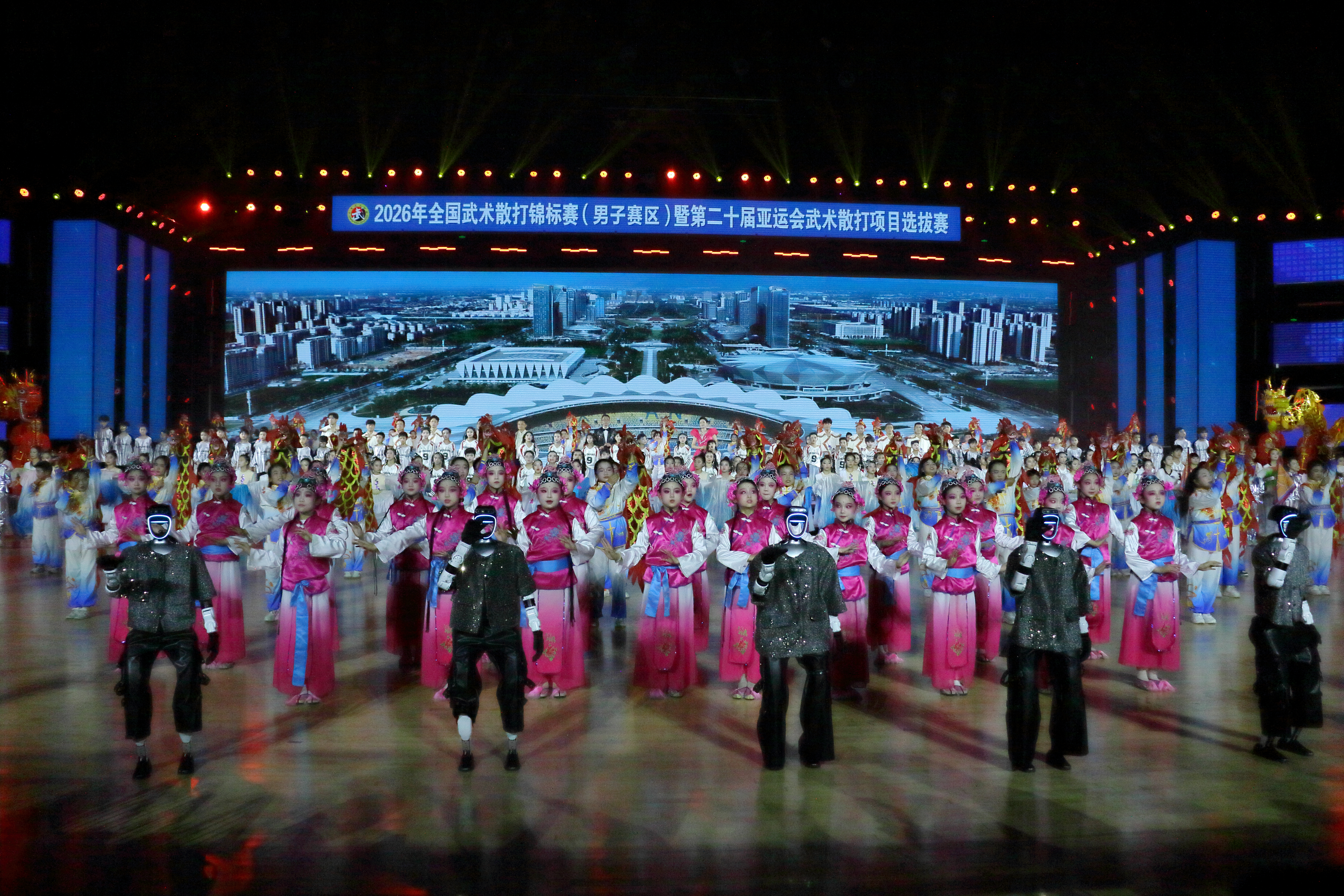 開幕式現(xiàn)場座無虛席、氣氛熱烈。運動員、裁判員方陣精神抖擻、依次入場,盡顯昂揚向上的體育風(fēng)貌。開幕式文藝展演精彩紛呈,智能機(jī)器人動感起舞、科技感十足,傳統(tǒng)武術(shù)表演剛?cè)岵?jì)、氣勢如虹,充分展現(xiàn)了中華武術(shù)的獨特魅力與全民健身的蓬勃活力。演員馬景濤、樊少皇,導(dǎo)演徐小明等文體界嘉賓傾情助陣,將現(xiàn)場氛圍一次次推向高潮,歡呼聲、喝彩聲此起彼伏。