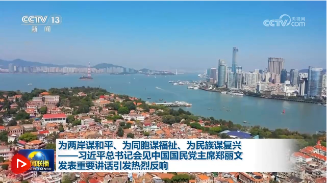 央視網(wǎng)消息(新聞聯(lián)播):4月10日,中共中央總書記習(xí)近平在北京會見鄭麗文主席率領(lǐng)的中國國民黨訪問團(tuán)并發(fā)表重要講話。習(xí)近平總書記著眼中華民族整體利益和長遠(yuǎn)發(fā)展,提出“堅持以正確認(rèn)同促進(jìn)心靈契合、堅持以和平發(fā)展守護(hù)共同家園、堅持以交流融合增進(jìn)民生福祉、堅持以團(tuán)結(jié)奮斗實現(xiàn)中華民族偉大復(fù)興”的重要論述,為推動兩岸關(guān)系發(fā)展進(jìn)一步指明了前進(jìn)方向、提供了重要指引??倳浀闹匾v話在海內(nèi)外引發(fā)熱烈反響。