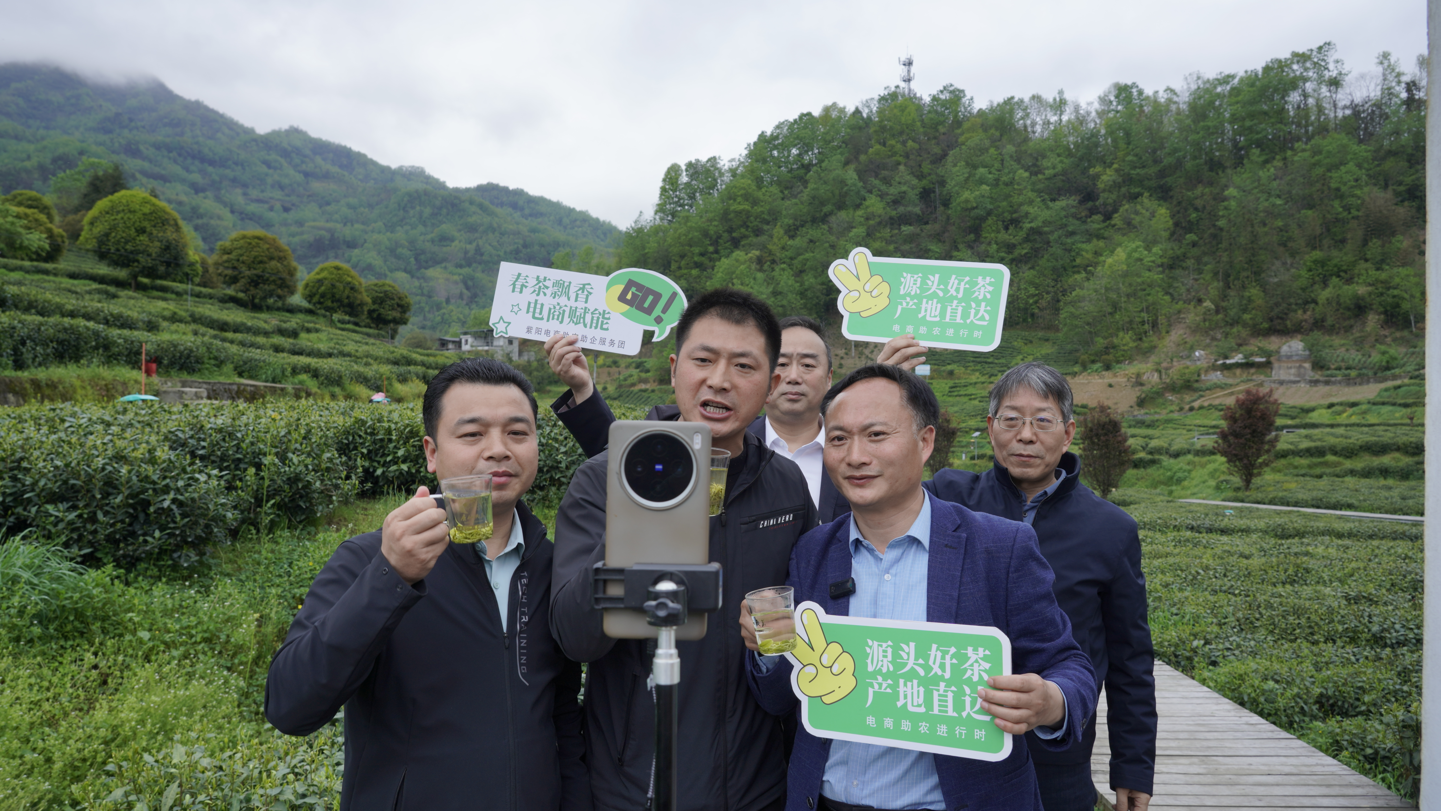 當(dāng)前正值紫陽(yáng)縣口糧茶集中上市時(shí)節(jié),4月10日,該縣十余名駐村第一書(shū)記組團(tuán)走進(jìn)雙橋鎮(zhèn)茶葉園區(qū),開(kāi)展“組團(tuán)服務(wù)·云端助農(nóng)”直播帶貨活動(dòng),以云端直播拓寬線(xiàn)上銷(xiāo)路,助力茶農(nóng)茶企增收增效。