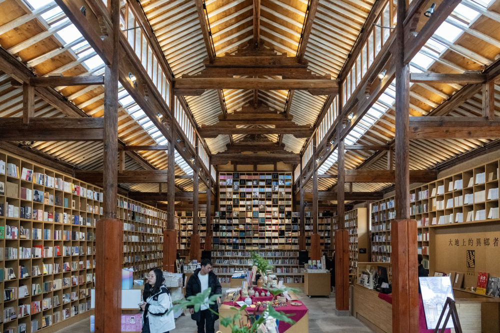 這是2025年3月17日拍攝的大理州沙溪鎮(zhèn)先鋒沙溪白族書局。這家書店坐落在劍川縣距沙溪古鎮(zhèn)約兩公里的地方。書局依托村子的舊糧倉(cāng)改造而成,如今已經(jīng)成為一座文化地標(biāo)和“精神糧倉(cāng)”。