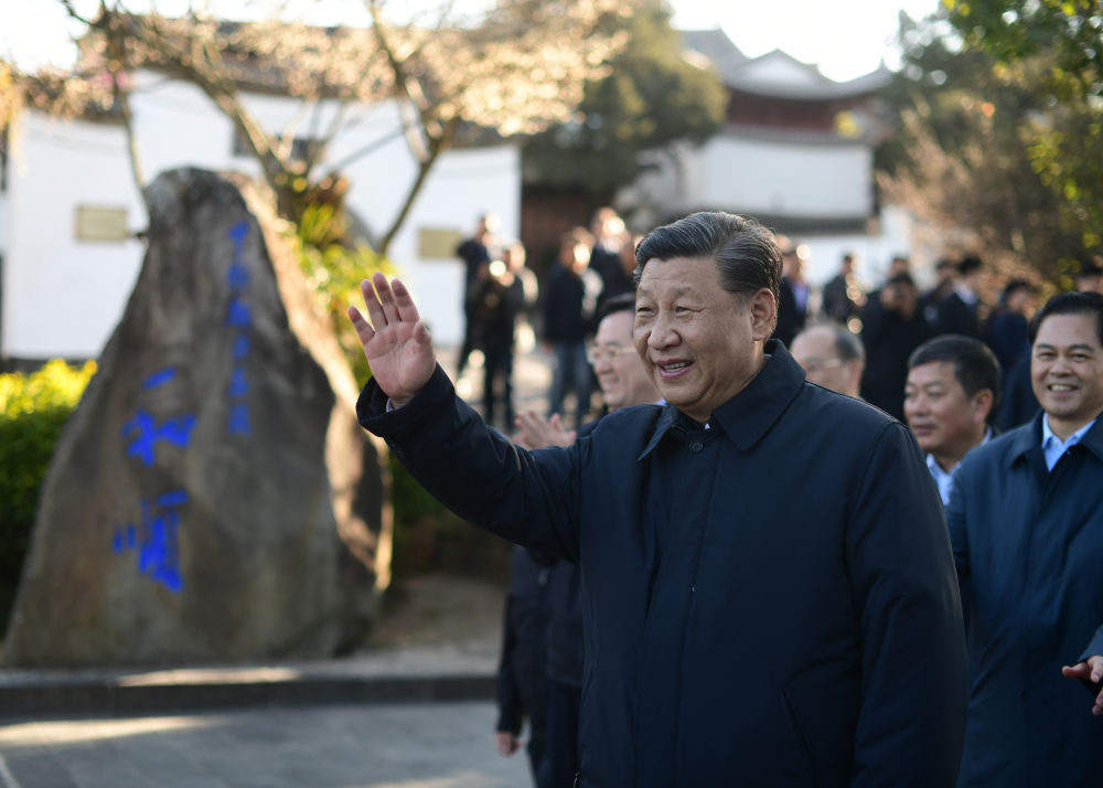 2020年1月19日下午,習(xí)近平在云南騰沖市和順古鎮(zhèn)考察調(diào)研時(shí),向游客和村民揮手致意。