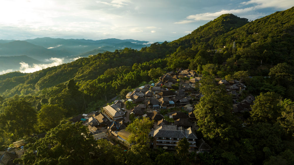 景邁山是云南普洱茶區(qū)最具標(biāo)志意義的一座古茶山,其古茶林是世界上保存完整、面積較大、種植歷史悠久的人工栽培古茶林典型代表。2013年以來(lái),當(dāng)?shù)仃懤m(xù)實(shí)施村寨文物保護(hù)展示、消防防雷及古茶林監(jiān)測(cè)項(xiàng)目,優(yōu)先采用傳統(tǒng)工藝、傳統(tǒng)材料,延續(xù)傳統(tǒng)干欄式民居建筑結(jié)構(gòu)、特征和風(fēng)貌,并進(jìn)行適應(yīng)性改造和性能提升,在保護(hù)傳承遺產(chǎn)真實(shí)性、完整性的同時(shí),推動(dòng)遺產(chǎn)保護(hù)成果惠及當(dāng)?shù)厝罕姟?023年9月,“普洱景邁山古茶林文化景觀”被列入《世界遺產(chǎn)名錄》,成為全球首個(gè)茶主題世界文化遺產(chǎn)。這是被山林與茶園環(huán)繞的云南景邁山翁基古寨一景(無(wú)人機(jī)照片,2023年9月18日攝)。