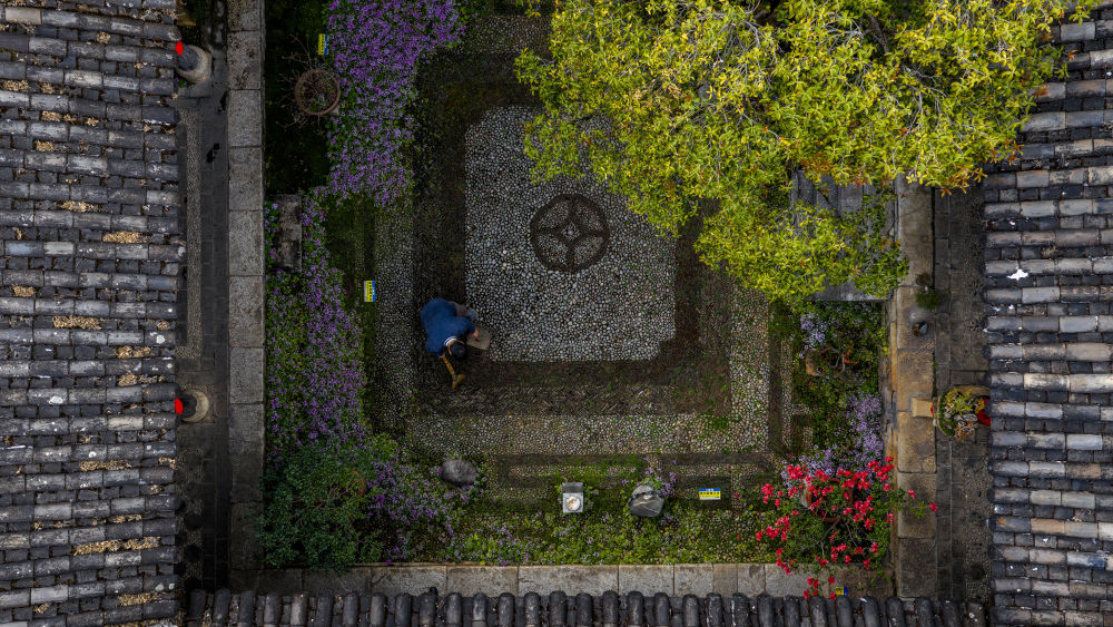 建于1875年的古宅“恒裕公”坐落在云南麗江古城五一街上,是一座“四合五天井”格局的典型納西民居院落。麗江古城申報(bào)世界文化遺產(chǎn)成功后,曾有人攜重金前來(lái)收購(gòu),但屋主堅(jiān)持不賣不租,將其改造為民居博物館,供游客免費(fèi)參觀。2016年,在麗江古城保護(hù)管理局的支持下,來(lái)自政府的撥款資助和保護(hù)修繕讓這座百年老宅獲得了新生,為來(lái)客保護(hù)了一方古色(無(wú)人機(jī)照片,2026年3月25日攝)。