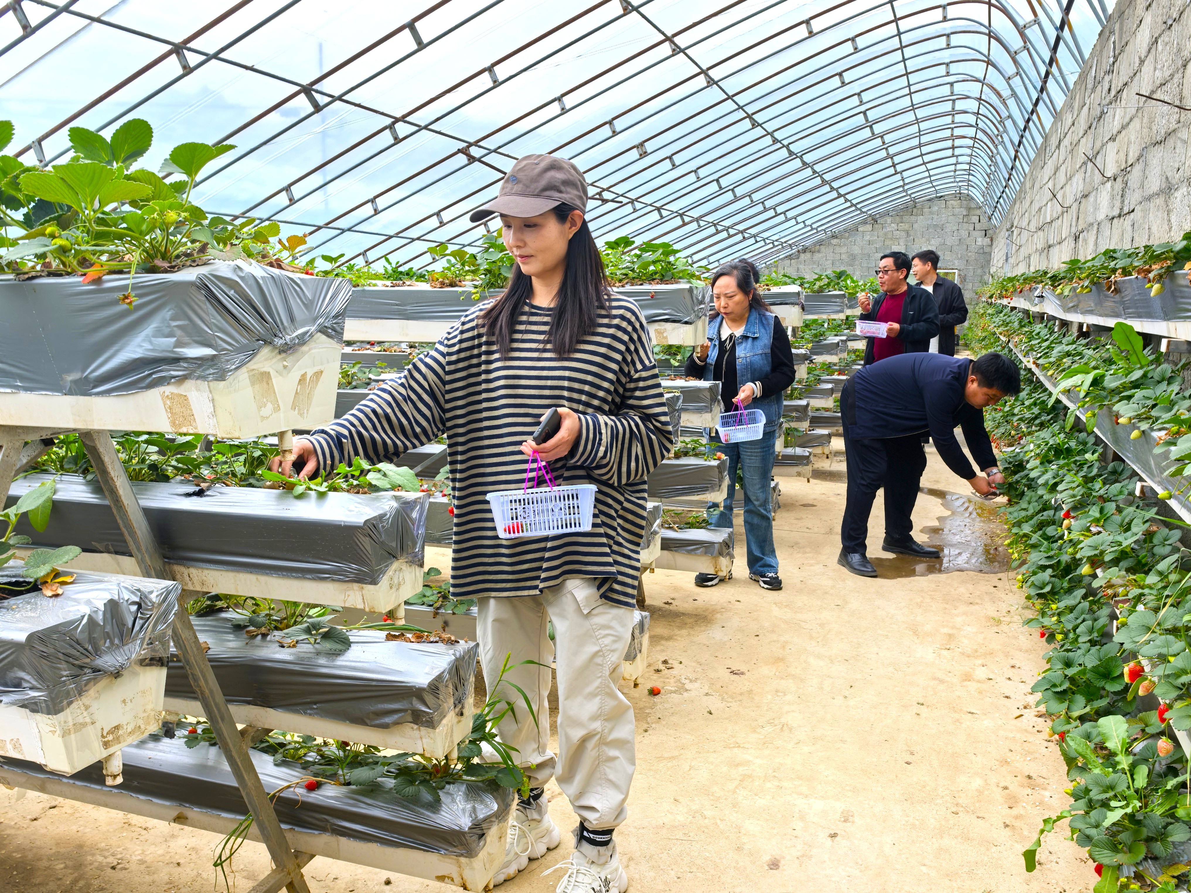 游客正在嵐皋縣眾達(dá)生態(tài)農(nóng)業(yè)科技有限公司的草莓園體驗(yàn)采摘樂(lè)趣。 張?zhí)毂?攝
