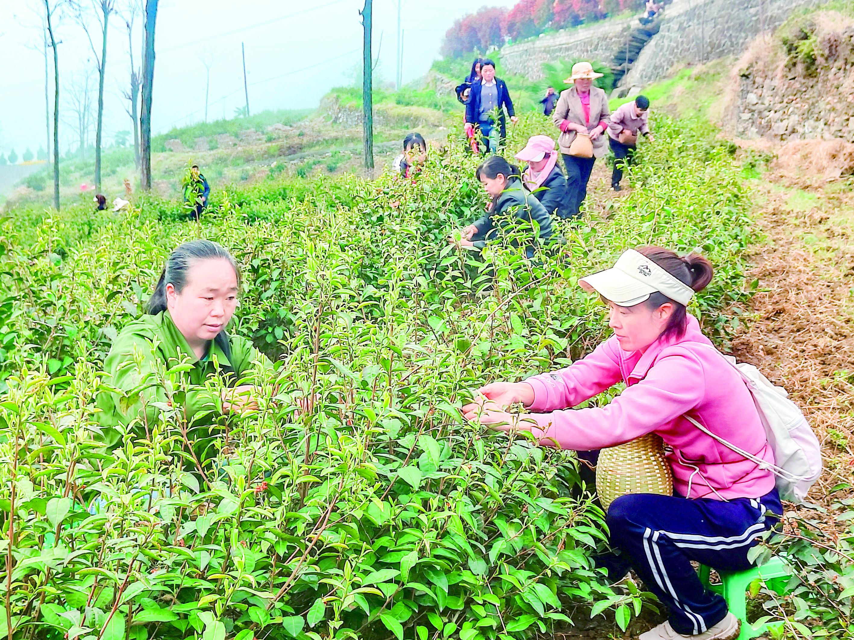 繁忙的采茶季,也為周邊村民搭建起家門(mén)口的增收平臺(tái)。進(jìn)入采茶期后,茶園日均用工50余人,高峰期超百人,村民人均日收入可達(dá)100元至150元?!拔壹译x得近,每年這個(gè)時(shí)候都來(lái)采茶,一季下來(lái)能掙幾千元?!闭诓刹璧拇迕裾f(shuō)。