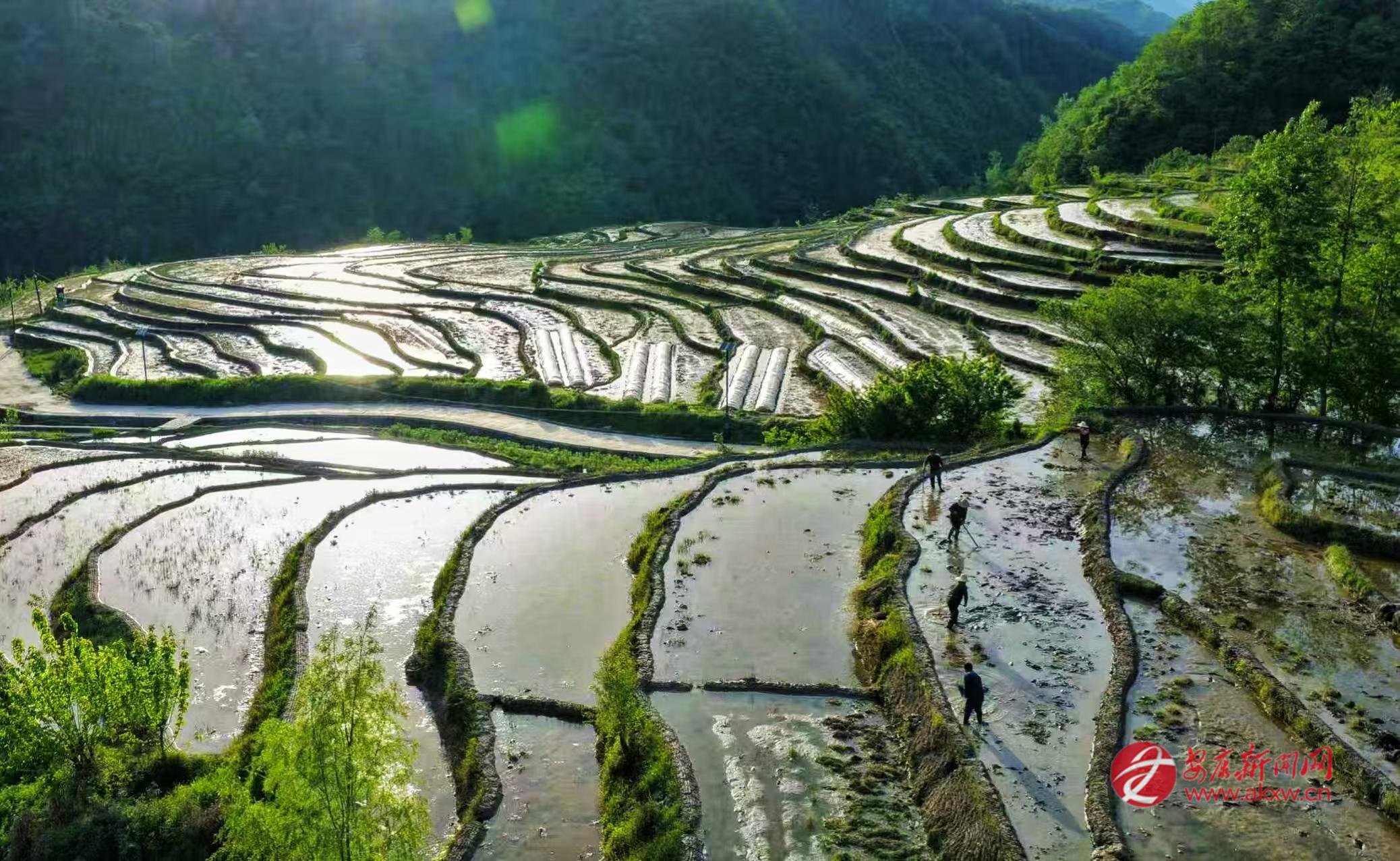 4月23日,嵐皋縣官元鎮(zhèn)古家村村民搶抓農(nóng)時,對2000余畝古水田進(jìn)行深翻灌溉,為下一步插秧做好準(zhǔn)備。 邱仕君 攝