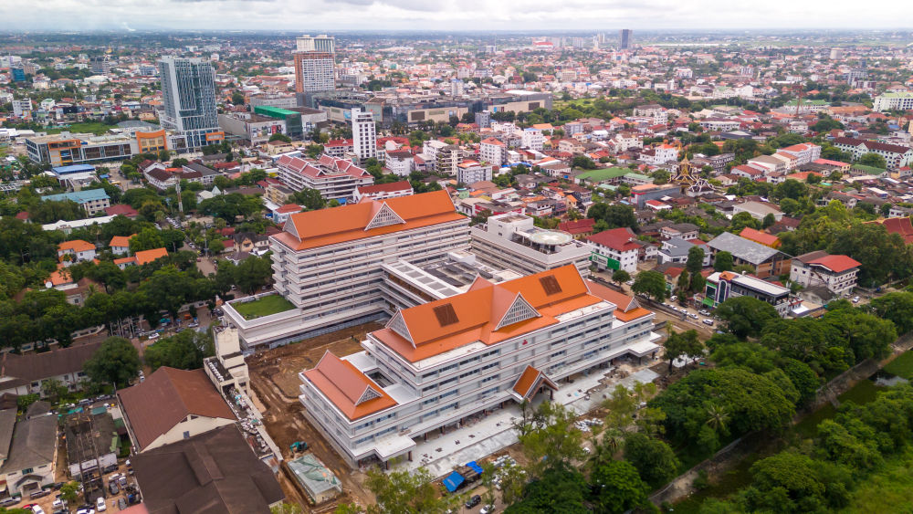這是2024年9月11日在老撾首都萬象拍攝的中國援老撾瑪霍索綜合醫(yī)院(無人機(jī)照片)。新華社發(fā)(凱喬攝)