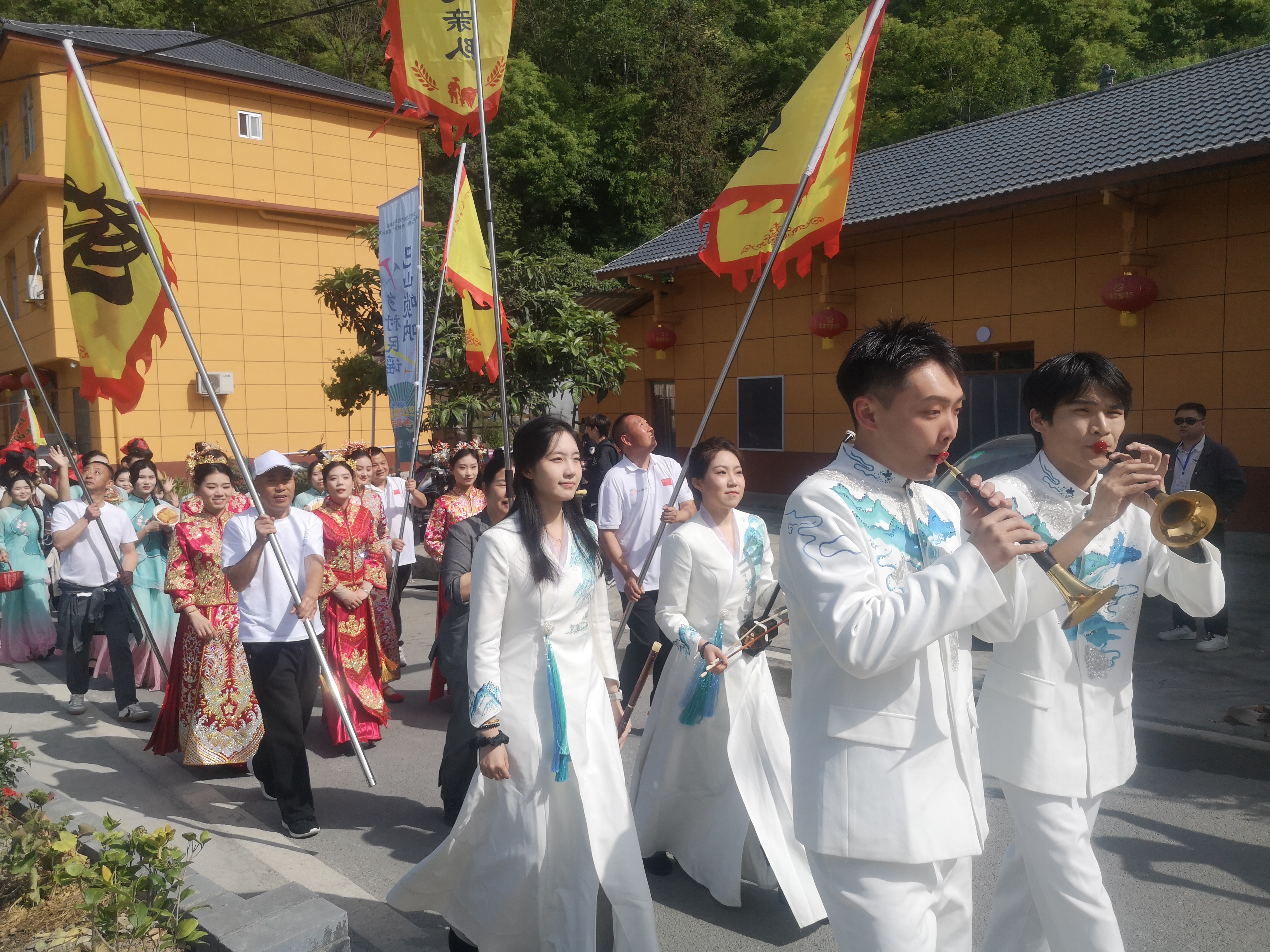 當(dāng)日上午,12支參賽隊(duì)伍沿“茅坪歲月”民宿集群街區(qū)開展巡游展演,吸引眾多游客和群眾駐足觀看。10時(shí)30分,伴隨著《大道鑼鼓迎客來(lái)》鏗鏘有力的鼓點(diǎn),大賽正式拉開序幕。