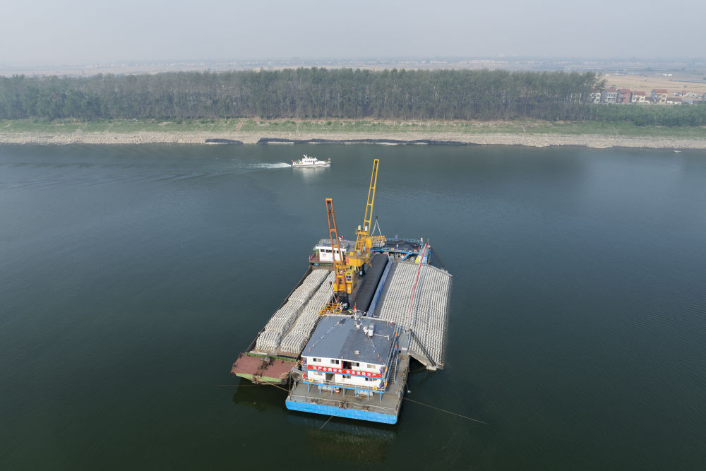 這是在湖北荊州瓦口子水道拍攝的工程施工現(xiàn)場(chǎng)(2024年9月26日攝,無(wú)人機(jī)照片)。當(dāng)日,長(zhǎng)江中游荊江河段航道整治二期工程全面開工。工程大幅提升長(zhǎng)江黃金水道中游通過(guò)能力,5000噸級(jí)船舶可全年經(jīng)由荊江河段直達(dá)重慶。