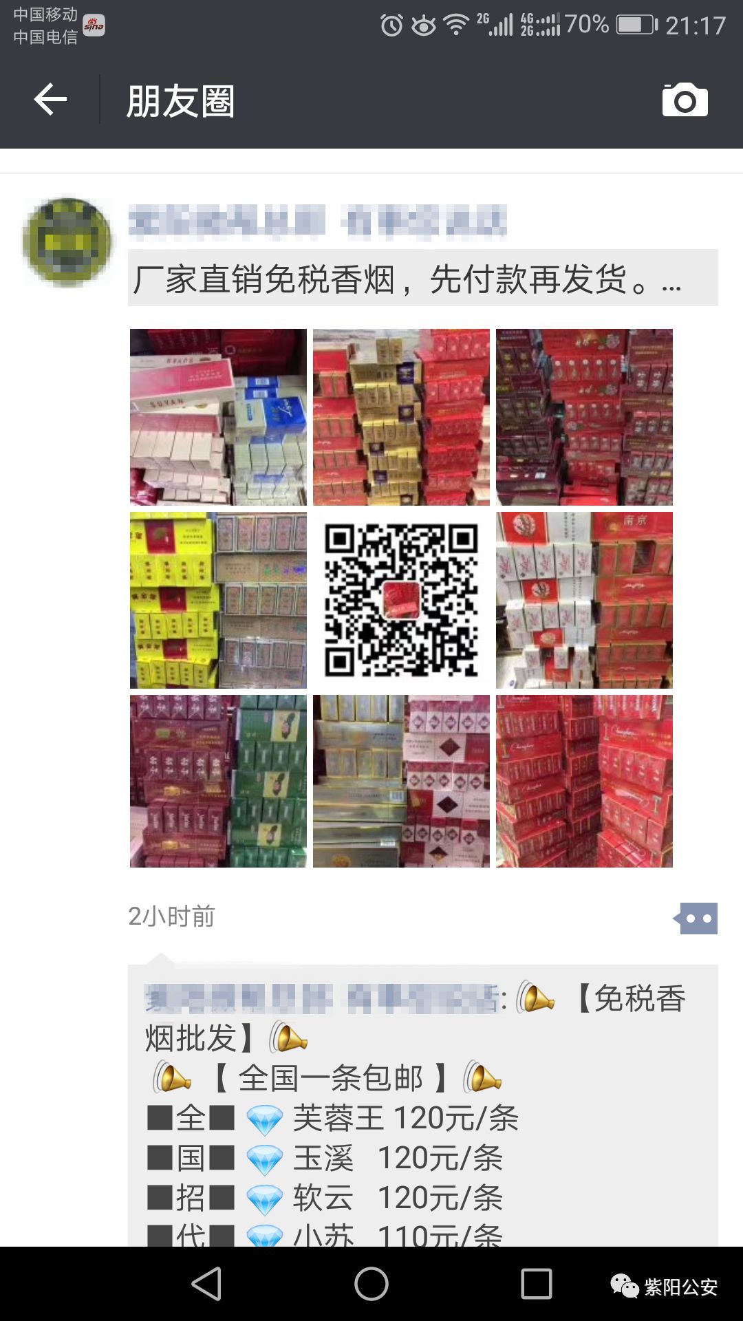 2018年3月以來(lái),違法行為人徐某利用微信多次在微信朋友圈發(fā)布涉及網(wǎng)絡(luò)賭博鏈接、銷(xiāo)售香煙等廣告鏈接,為違法犯罪活動(dòng)做網(wǎng)絡(luò)宣傳,收取相關(guān)費(fèi)用,從中非法獲利。紫陽(yáng)縣公安局依據(jù)《中華人民共和國(guó)網(wǎng)絡(luò)安全法》第六十七條規(guī)定,對(duì)違法行為人徐某做出行政拘留五日處罰。