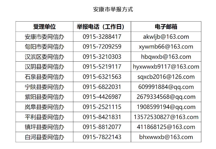 安康“整治‘自媒體’無(wú)底線博流量”專項(xiàng)行動(dòng)舉報(bào)方式