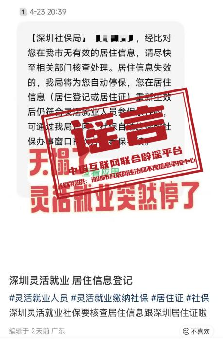 辟 謠 “深圳靈活就業(yè)社保被停?!辈粚?shí)